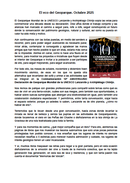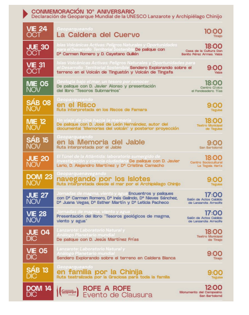 Por todo ello, los meses de octubre, noviembre y diciembre traen movimiento sísmico, de esos en los que no queda otra alternativa que levantarse del sofá y unirse a las actividades que se integran en la Conmemoración 10º ANIVERSARIO Declaración de Geoparque Mundial de la UNESCO Lanzarote y Archipiélago Chinijo.