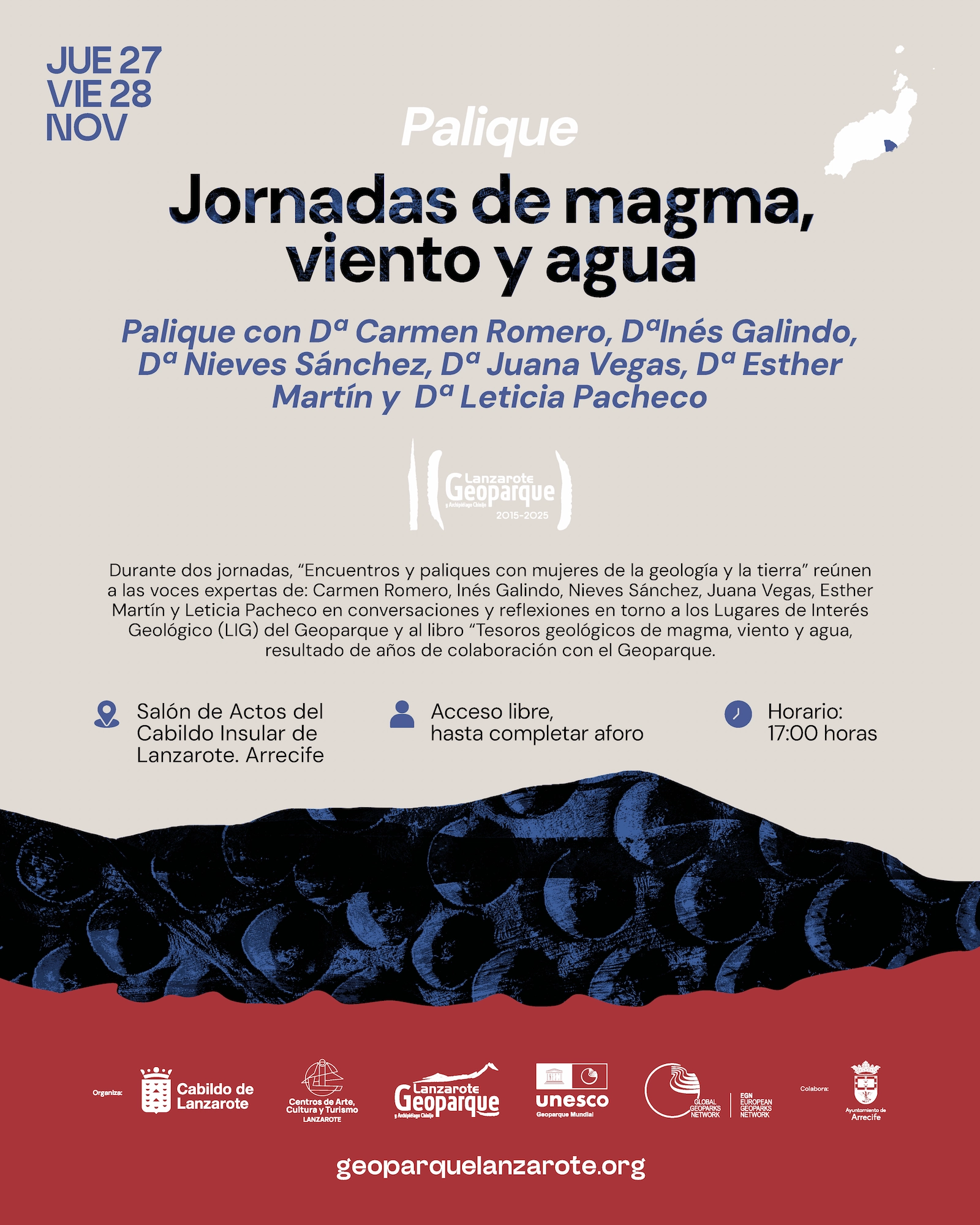El 27 y 28 de noviembre, el Geoparque Mundial UNESCO Lanzarote y Archipiélago Chinijo se convierte en un espacio de encuentro, diálogo y celebración del conocimiento geológico con las jornadas “Encuentros y paliques con mujeres de la geología y la tierra”.